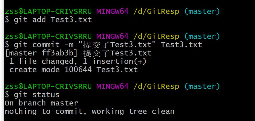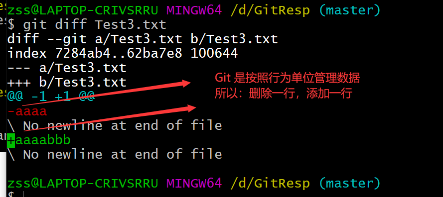 总结: git diff [文件名] —》 将工作区中的文件和暂存区中文件进行比较