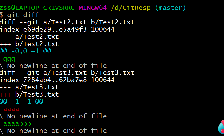总结:git diff —>比较工作区中和暂存区中 所有文件的差异