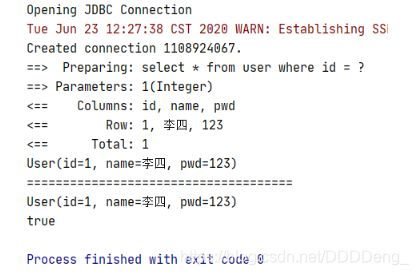 User user2 = mapper.getUserById(1);