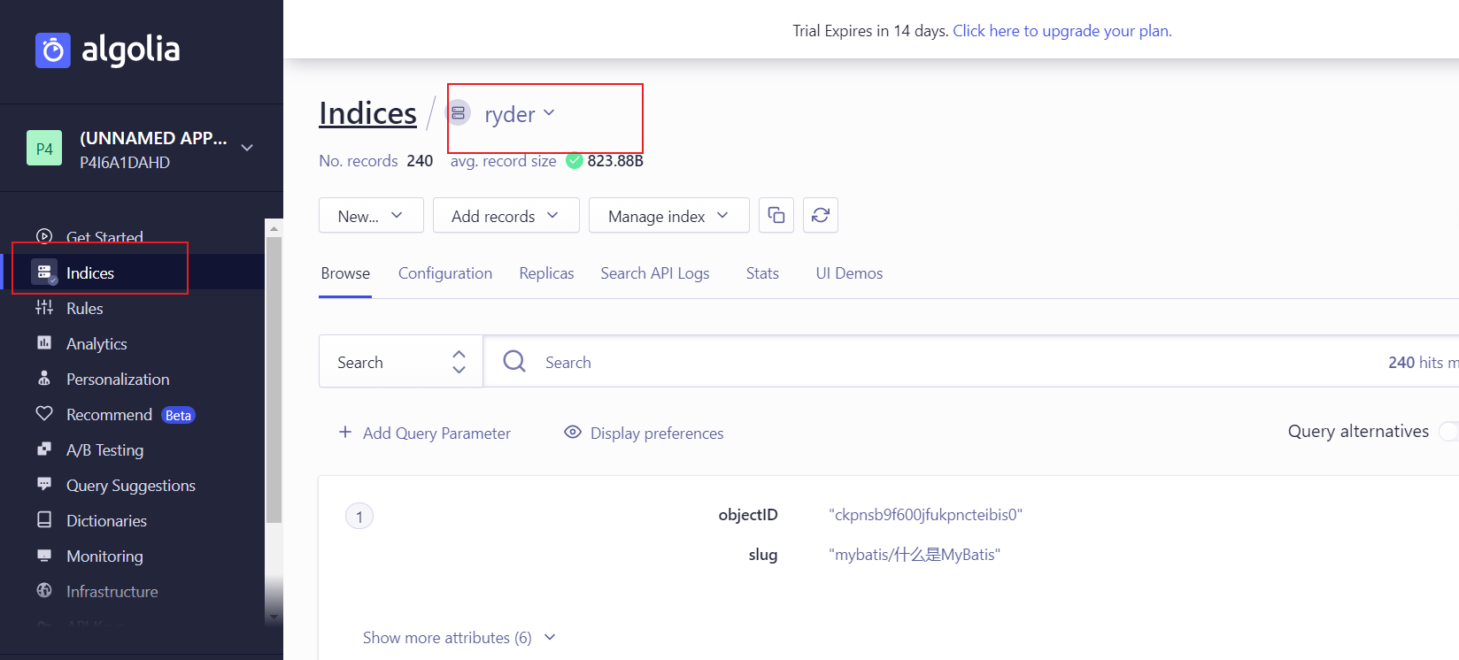 indices然后在右侧页面中添加一个indices如下的 ryder 就是我配置好的