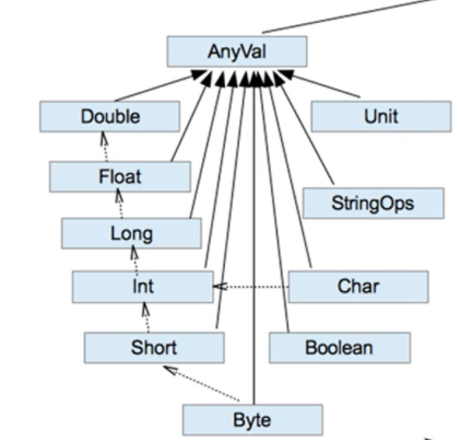 - Scala中一切皆为对象,分为两大类AnyVal(值类型),AnyRef(引用类型),他们都是Any子类