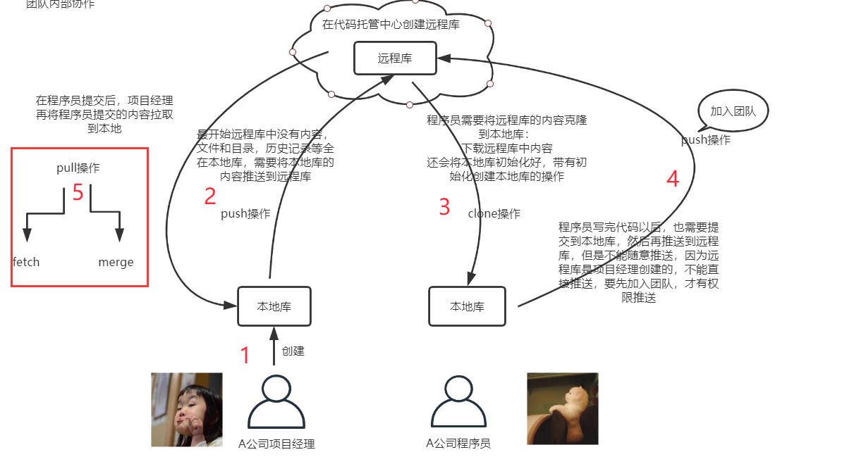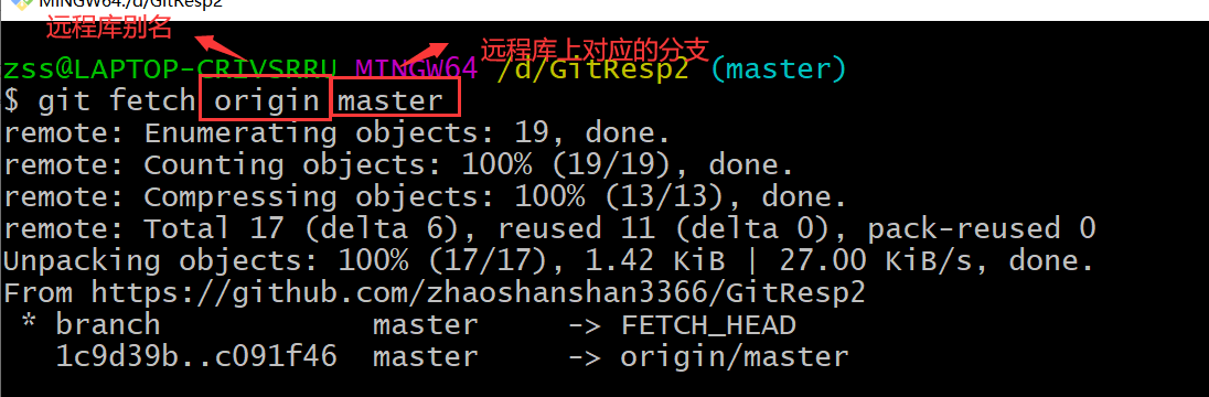 在抓取操作执行后,只是将远程库的内容下载到本地,但是工作区中的文件并没有更新。工作区中还是原先的内容