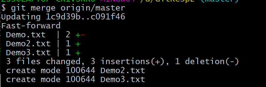 然后发现内容都正确,就可以进行合并操作了合并之前应该将分支切换回来