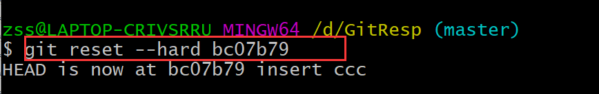 reset命令:前进或者后退历史版本