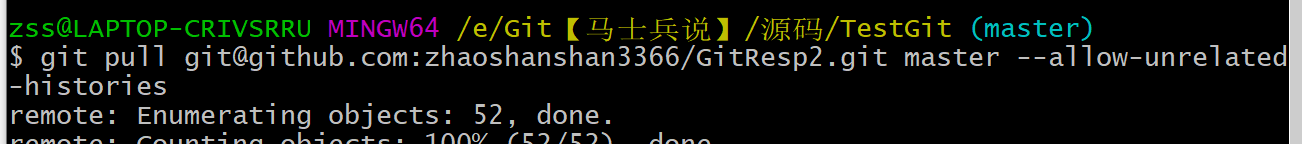 假如我们的源是origin,分支是master,那么我们需要这样写 git pull origin master --allow-unrelated-histories