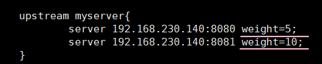 weight代表权重,默认为1权重越高被分配的客户端越多