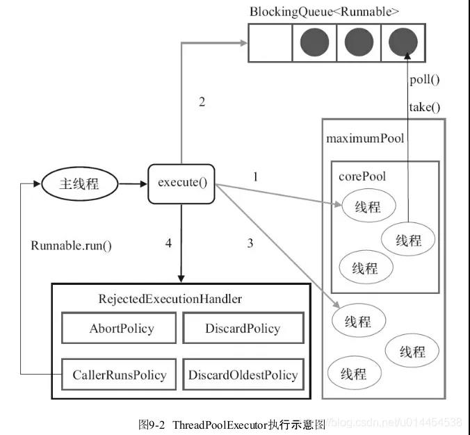 ThreadPoolExecutor类,用来执行提交的任务。因此,任务提交到线程池时,具体的处理流程是由ThreadPoolExecutor类的execute()方法去完成的。
