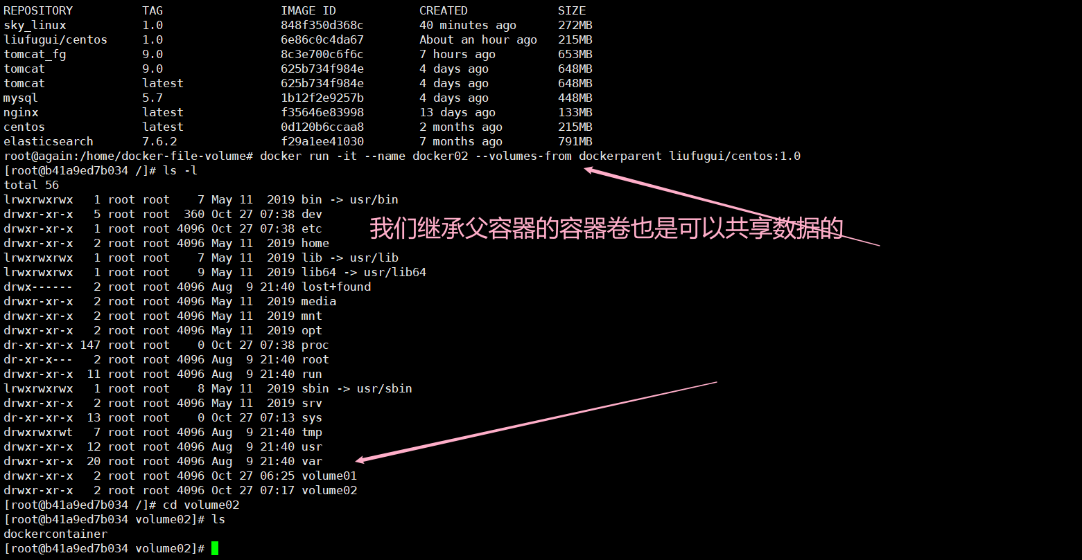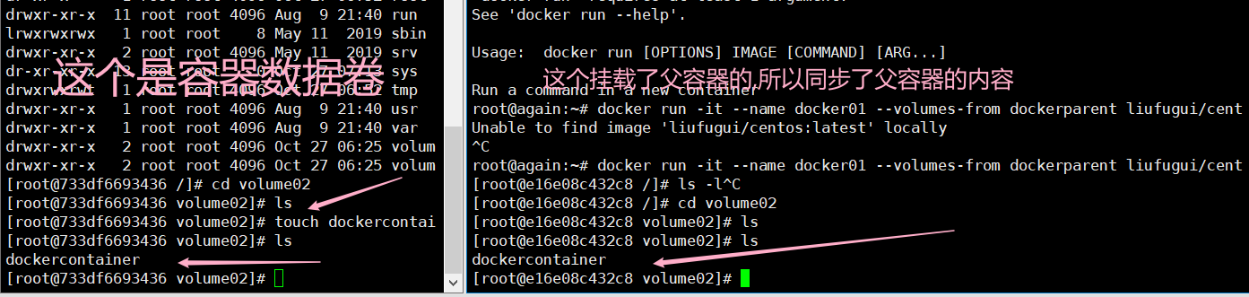 当我们在启动一个容器去挂载docker01的时候是否可以也同步一下父容器数据卷的内容呢?