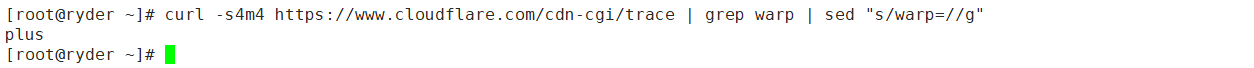 curl -s4m4 https://www.cloudflare.com/cdn-cgi/trace | grep warp | sed "s/warp=//g"
