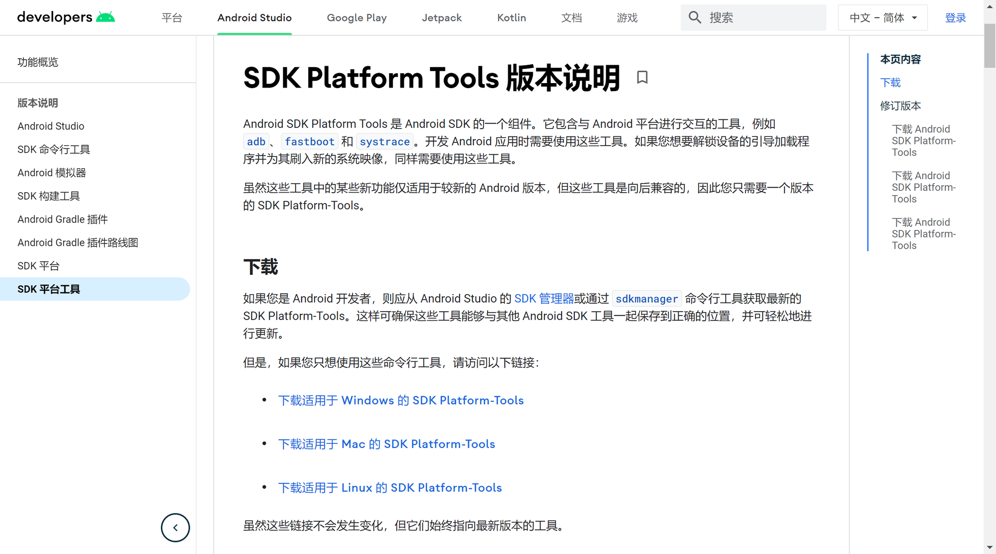 打开 Android SDK Platform Tools 的官网,点击下载适用于 Windows 的 SDK Platform-Tools