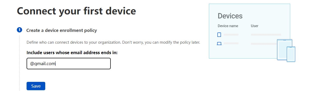 输入你邮箱的后缀,这里以 Gmail 为例,然后点击 Save (这个邮箱后缀无所谓,后续可以随意添加和修改)